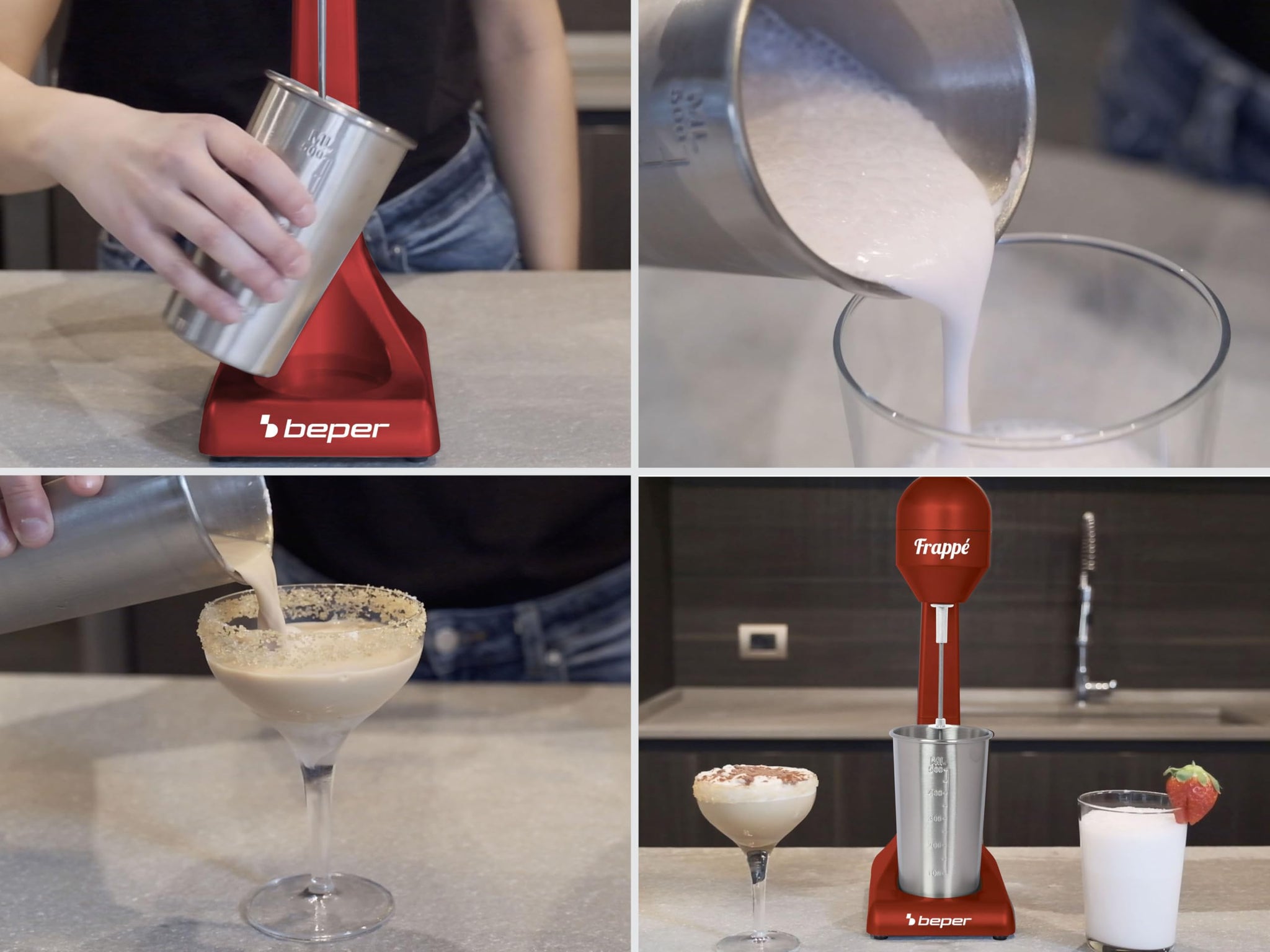 Einzelheiten: Der Beper Schneebesen ist ideal für die Zubereitung von Milchshakes, geschüttelten Kaffees oder Cocktails. Die Plastikpeitschen und der stabile Behälter (500 ml) sind auch für die Herstellung von Cremes für Süßigkeiten und Zubereitung von Kindergerichten geeignet. Der Mixer verfügt über 2 Betriebsgeschwindigkeiten. Wählen Sie die Geschwindigkeit entsprechend der gewünschten Konsistenz aus, die Sie erhalten möchten. Beide Geschwindigkeiten eignen sich nicht zum Mischen von ganzen Früchten oder Eis. Tauchen Sie das Gerät nicht in Wasser oder andere Flüssigkeiten. Reinigen Sie das Gerät mit einem feuchten Tuch. Der Stahlbehälter kann auch in der Spülmaschine gereinigt werden. TECHNISCHE DATEN: Leistung: 100W; Stromversorgung: 220-240 V ~ 50/60 Hz, Klasse II.