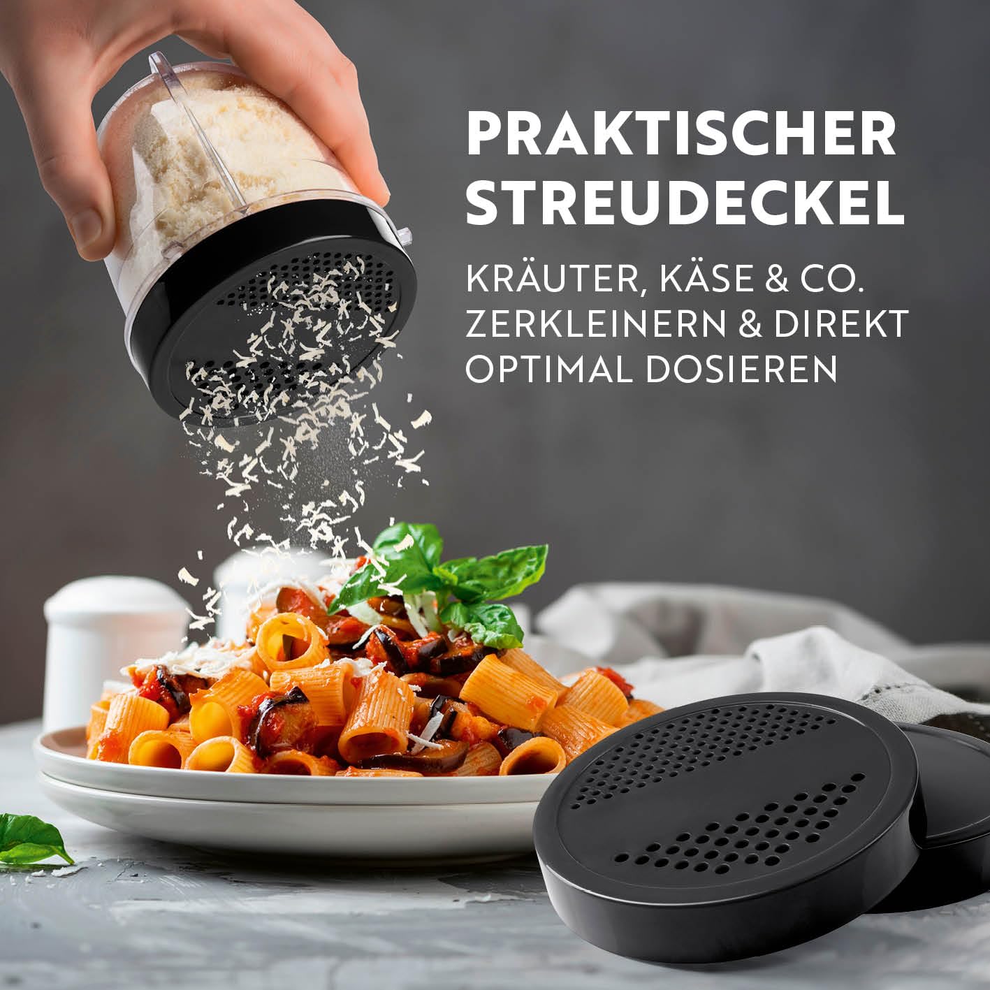 - ELEKTRISCH & STARK: Die Küchenmaschine wartet mit einem kraftvollen 400-W-Motor mit 22.000 U/min auf. Auch die robuste Edelstahl-Kreuzklinge vom Zerkleinerer sorgt für feine, homogene Konsistenzen. Sogar Nüsse & Kräuter kannst du mit dem Hochleistungsmixer hacken & dank Streudeckel optimal dosieren.